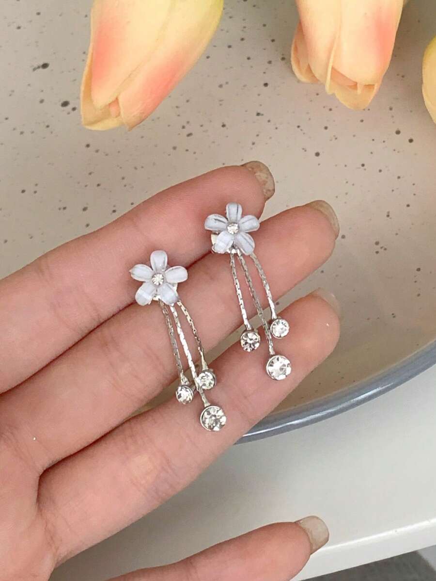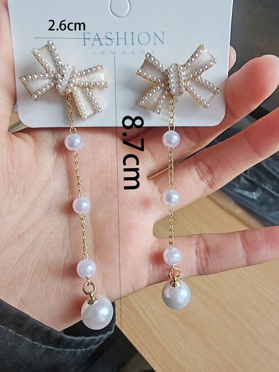 1 Pair Fashionable Bow Pearl Tassel Long Dangle Earrings, Sweet And Elegant For Women