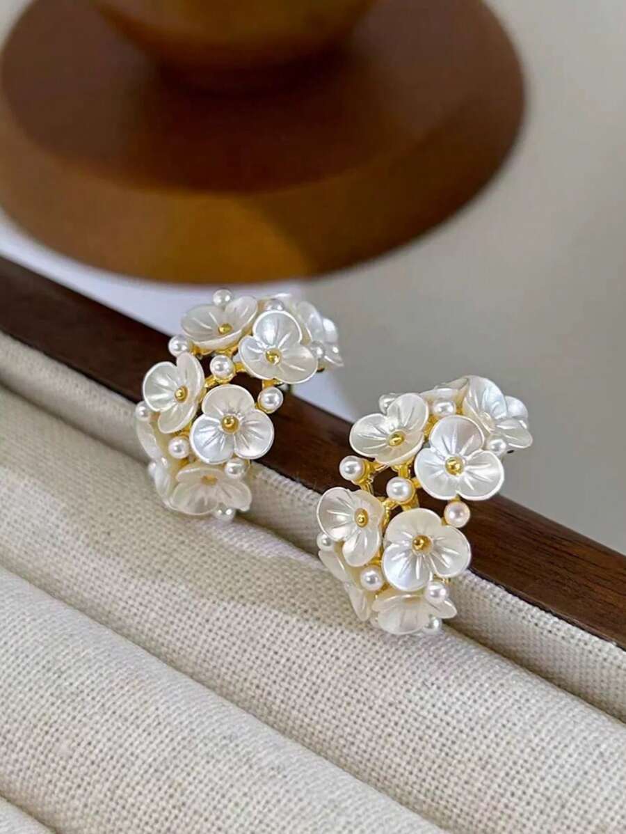 1 Pair Faux Pearl White Flower Petal Drop Earrings, Suitable For Everyday Wear