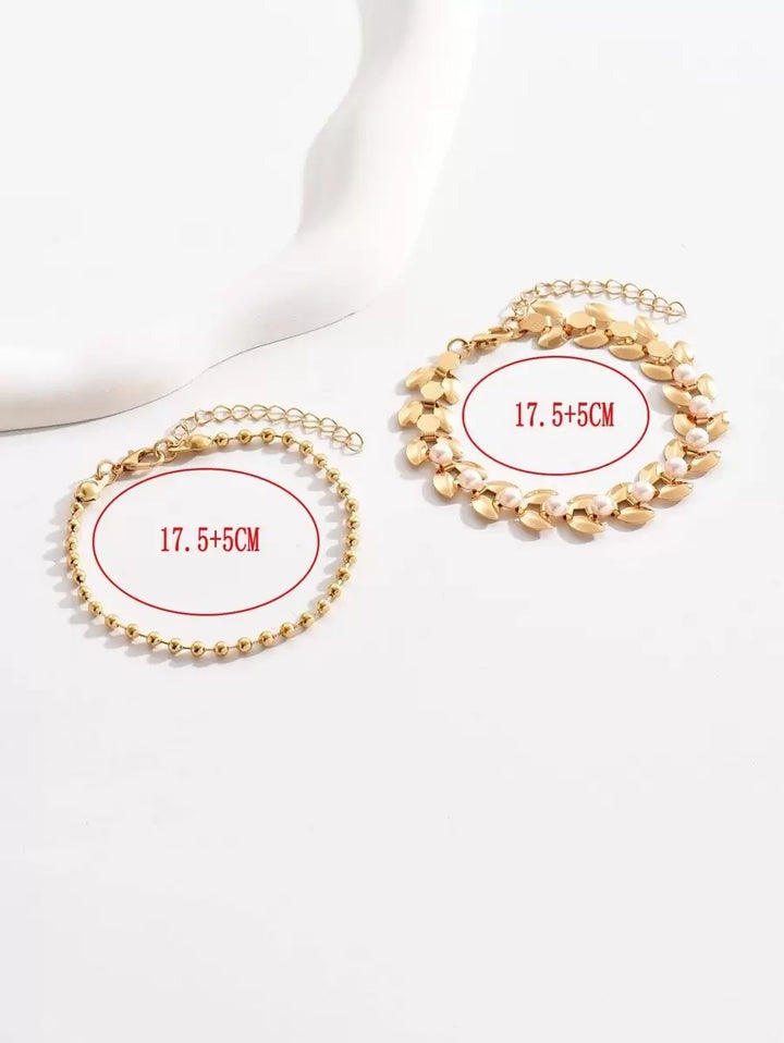 2pcs Women Gold Wheat Ear Charm Bracelet (Customized Length, Adjustable Pearl & Crystal Quantity)