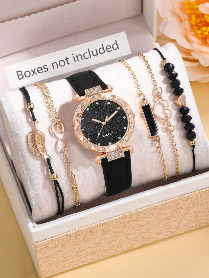 6Pcs/Set Women's Watch Fashion Casual Elegant Simple Round Quartz Wristwatch And Woven String, Bracelet Jewelry Set Suitable For Daily Wear, Back-To-School Season, Graduation Season, Thanksgiving, Couples, The Best Gifts Watch Box Not Included