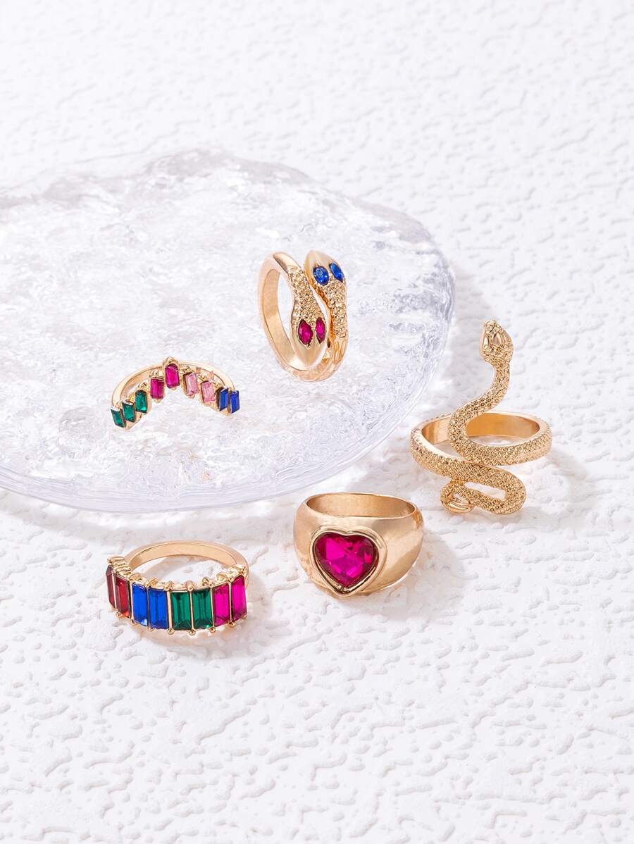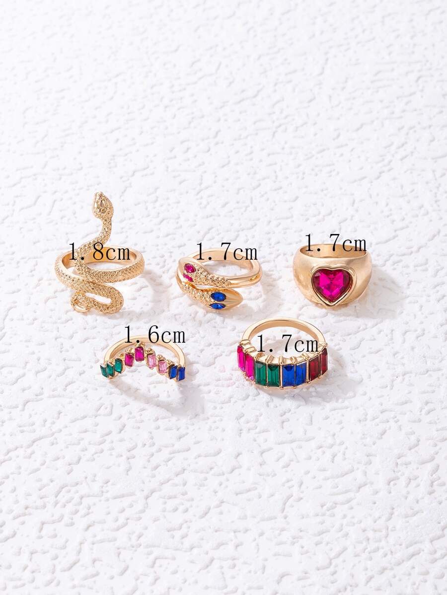 imoli 5pcs Random Color Rhinestone & Snake Decor Ring