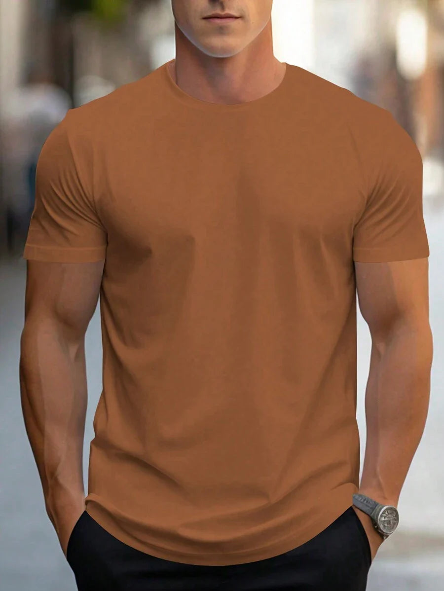 Manfinity Homme Men's Solid Color Round Neck Short Sleeve T-Shirt