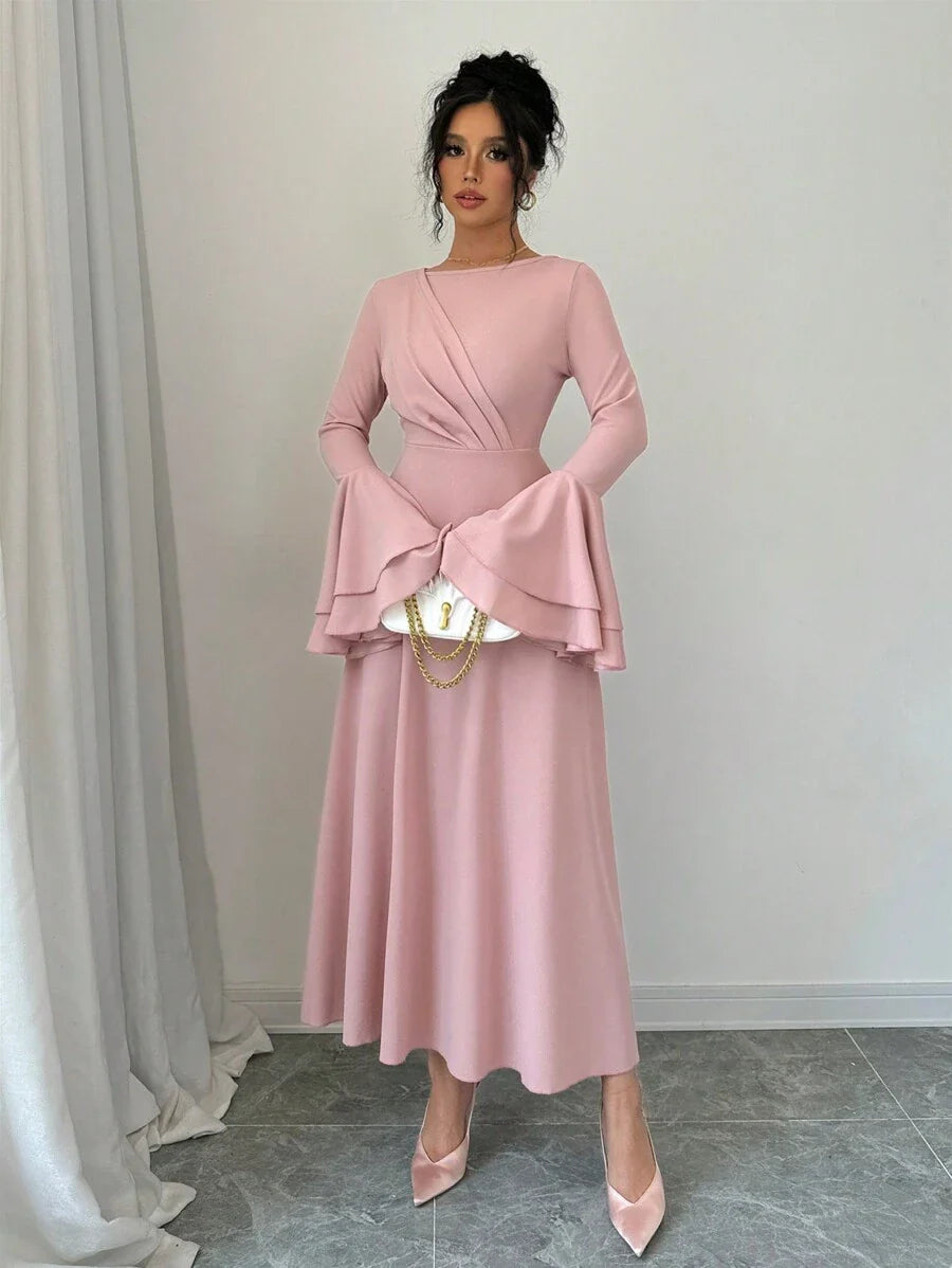 Rafferiza Women's V-Neck Long Lantern Sleeve Pleated Elegant Charming Dress Maxi Women Outfit