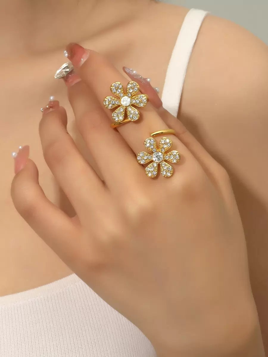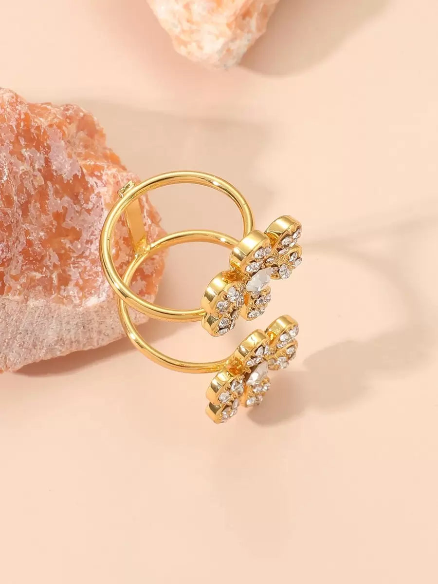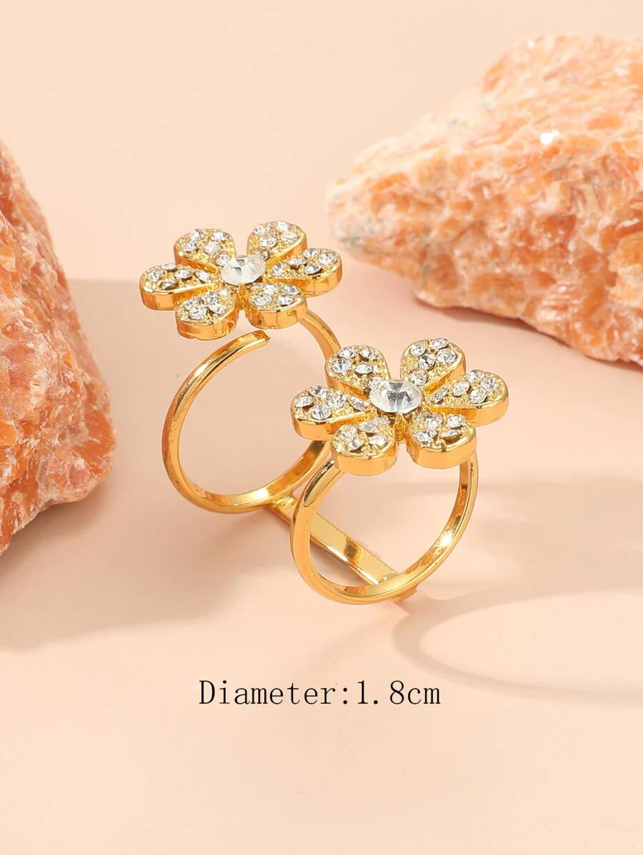 Rhinestone Flower Decor Cuff Ring Valentines,Mom,Mother,Mother's Day,Gift